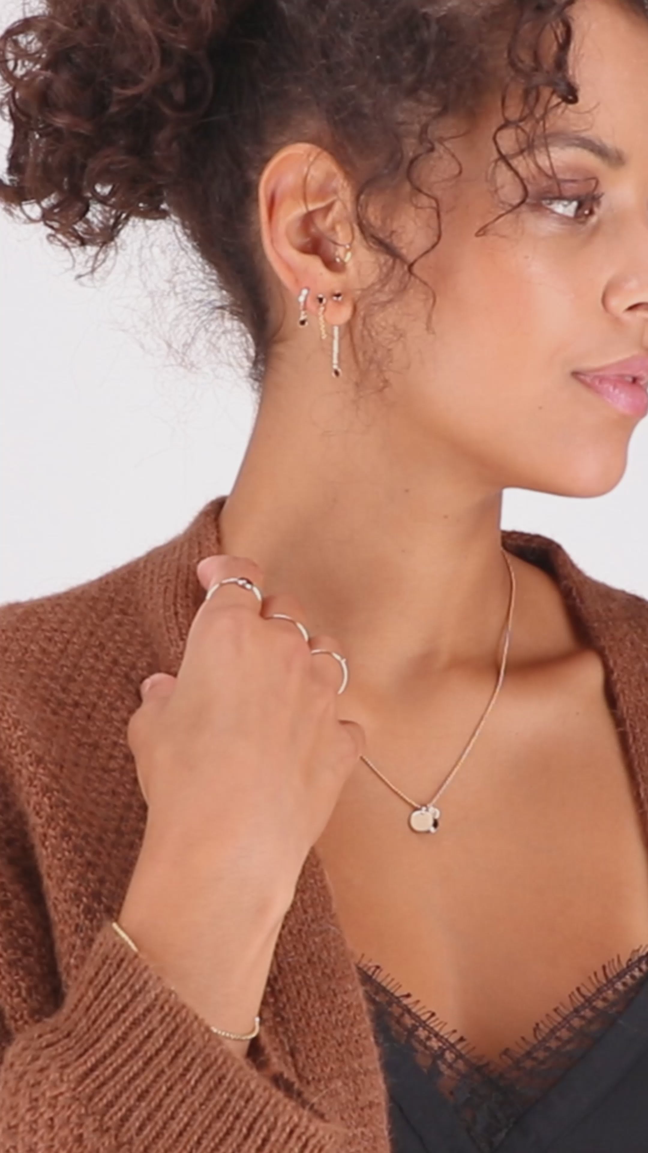 Our packaging, designed by an award-winning design studio with sustainability in mind, uses FSC®-certified paper and long-life materials. The jewellery is placed in an eco-friendly cotton pouch then placed inside our signature long-life jwellery box and presented in a pink FSC-certified gift bag with ribbon handles — ready for gifting.
